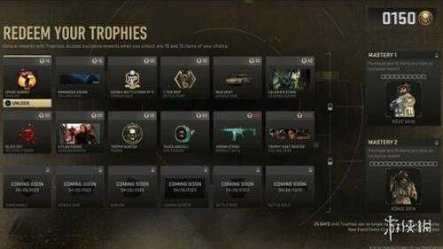 在《战区2》中,真人和电脑敌人都会掉落代币,但是如果玩家死亡则会失去所有代币。因此玩家必须要赢得大逃杀,或在购买站将代币存起来才能获取代币。在“DMZ”玩法和《战区2》的代币获取方法相同,并且同样会在玩家死亡时全部丢失。可兑换的奖励包括名片、武器皮肤和挂件、赛季通行证经验值加成等。解锁 10 个和 15 个物品后,还将获得两个角色皮肤。一批新的奖励将于 4 月 26 日开放供玩家兑换,包括一个新的战斗步枪武器蓝图。所有可解锁奖励如下图所示:
