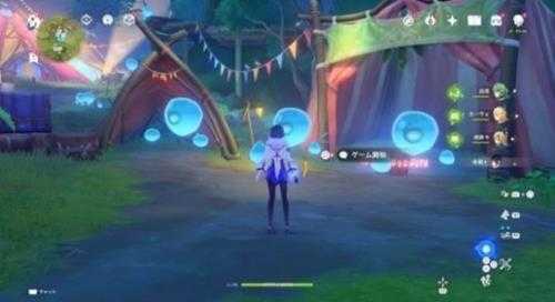 3.靠近小水珠开始捉迷藏,分别与史莱姆箱子、会动的鳄鱼玩具、正在眨眼的史莱姆箱子、人偶、手杖互动。