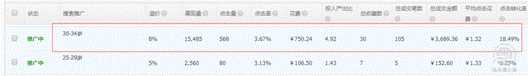 那么,在直通车的搜索人群圈定,我重点针对25-29岁、30—34岁分年龄段进行投放,通过这段周期数据,其中30-34岁这部分人群的数据反馈较25-29岁人群效果好。
