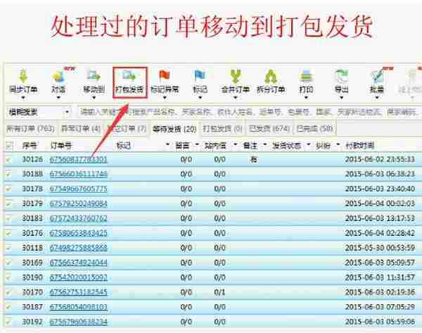 2.按照订单状态排序,把未到账的订单删除或者移动到等待发货里面