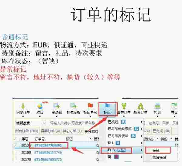 而软件中会出现一些异常订单,比如发货时候,有货速发,没有货等发了货再填单,否则就会异常。另外,个人可以设定标记。